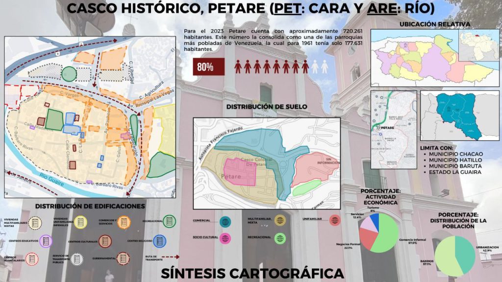Lo más relevante que se presenta en este mapa es la caracterización integral del Casco Histórico de Petare, abarcando: